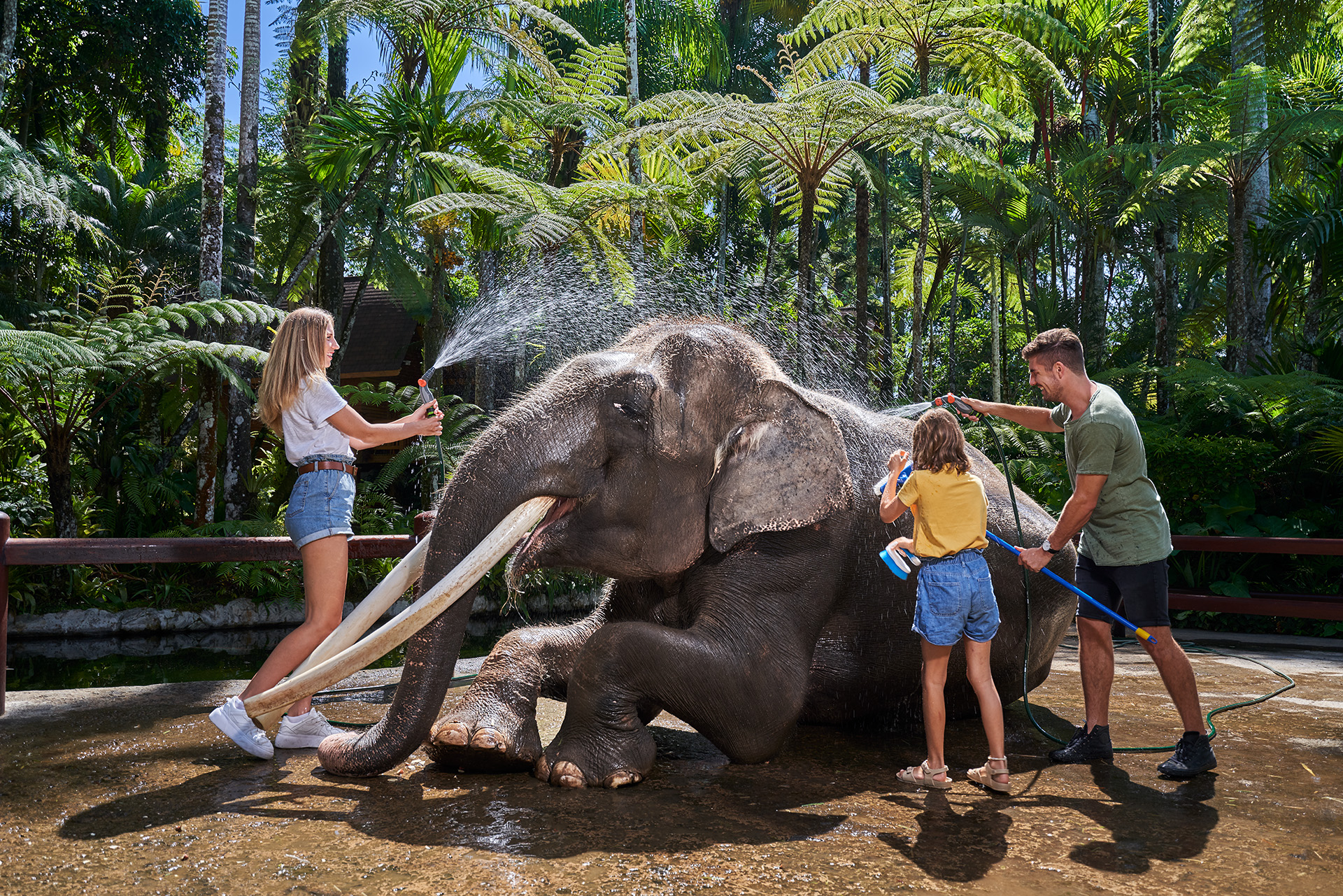 As the sun rises over Ubud, the day begins with a gentle adventure. We start at an elephant sanctuary tucked away in the lush jungle. Here, amidst the serene surroundings, we learn about these majestic creatures and participate in bathing them—a bonding experience that brings us closer to nature.